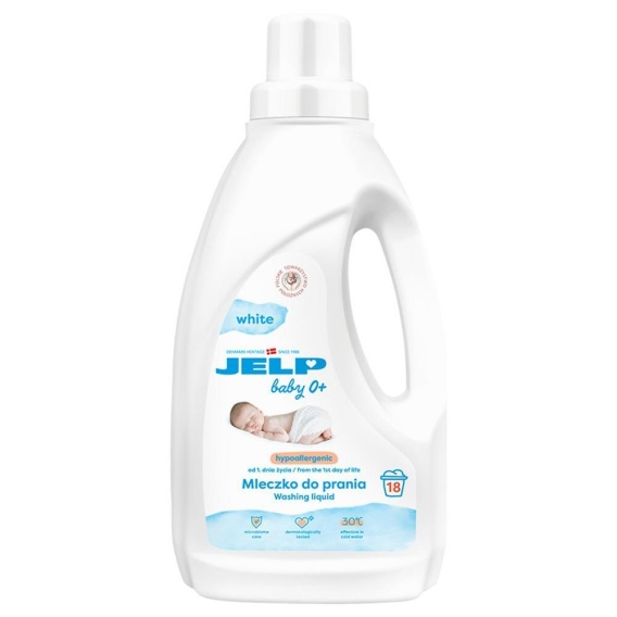 JELP Baby 0+ to hipoalergiczne mleczko do prania białych tkanin stworzone specjalnie dla niemowląt od 1. dnia życia. Skutecznie usuwa zabrudzenia już w 30°C i jest wyjątkowo delikatne dla wrażliwej skóry dziecka.