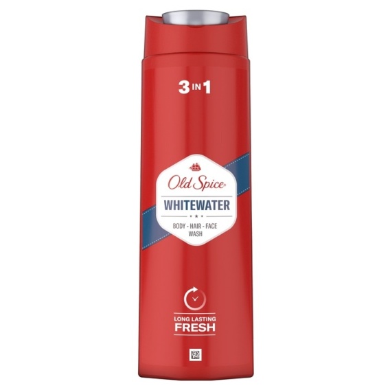 Old Spice Whitewater 3w1 to żel pod prysznic dla mężczyzn, który łączy mycie ciała, włosów i twarzy w jednym produkcie. Skutecznie oczyszcza, eliminuje nieprzyjemne zapachy i zapewnia długotrwałe uczucie świeżości. Orzeźwiający, morski zapach Whitewater idealnie sprawdza się do codziennego użytku. Pojemność 400 ml.