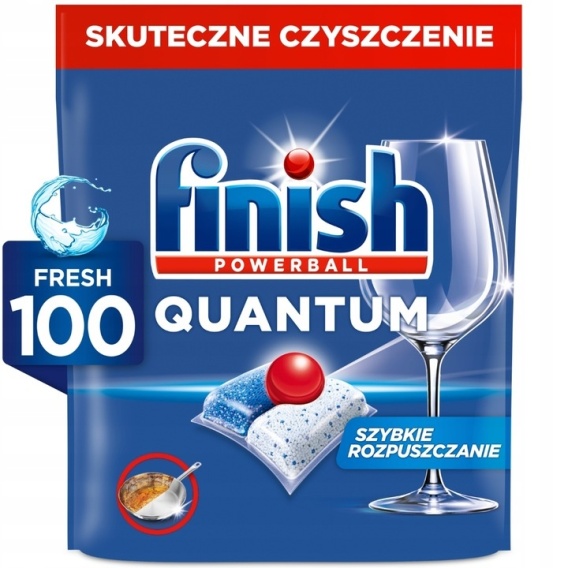Finish Quantum Regular to najwyższy poziom skuteczności w zmywaniu. Wybierz sprawdzoną formułę Powerball, która usuwa nawet trudne zabrudzenia, zapewniając krystaliczny blask naczyń i długotrwałą ochronę zmywarki.