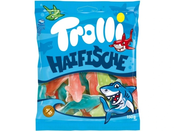Trolli Haifische to wyjątkowe żelki o intensywnym owocowym smaku tutti frutti. Mają miękką i sprężystą konsystencję dzięki czemu każda sztuka jest przyjemna w gryzieniu. Kolorowe rekiny zachwycają swoim wyglądem sprawiając że po jednego żelka sięga się z uśmiechem i ochotą na kolejny.